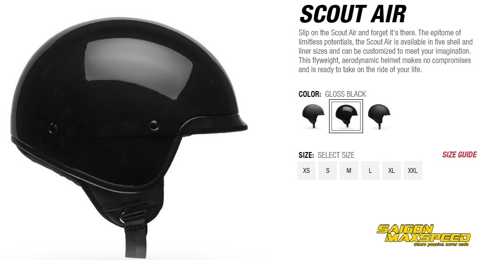 - Slip on the Scout Air and forget it's there. The epitome of limitless potentials, the Scout Air is available in five shell and liner sizes and can be customized to meet your imagination. This flyweight, aerodynamic helmet makes no compromises and is ready to take on the ride of your life.